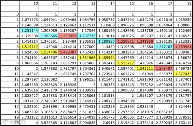 “我对这个问题倒是有个猜测。”泉余室友敲敲座舱的墙板,上面显示出一个表格。“这里是10到18平均律每个音符与‘多’的频率比。”