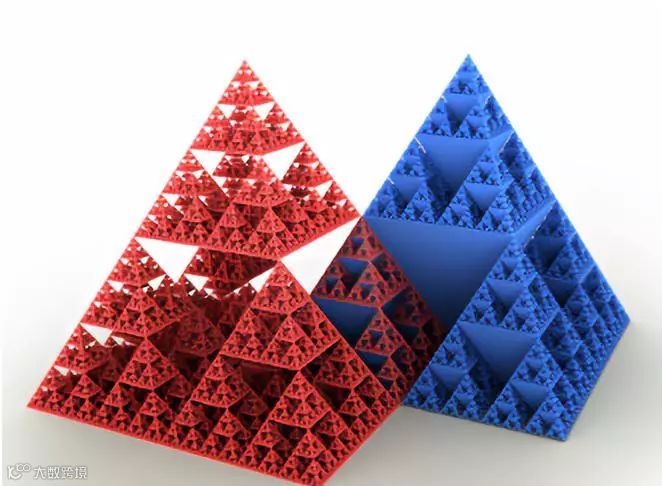 图14.正四面体分形结构。平移对称性是位置平移后保持不变的对称性,与之相对应,分形结构的自相似性是放大缩小变化下的不变性。 | 图片来源:Wikipedia
