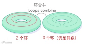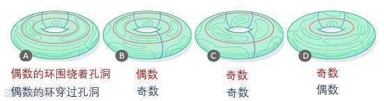 要将纠缠模式作为一种拓扑序来理解,不妨像文小刚所做的那样,想象量子自旋液体包裹在环面上,一些圈围绕着圆环的孔洞,一些圈穿过孔洞。由于这些围绕和穿过孔洞的自旋圈,量子自旋液体不是以所有圈的图样叠加而成的单一基态存在,而是处于四种分立的基态之一,这四种基态对应于自旋圈图样的四种不同叠加态。