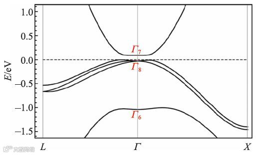 图9 AgNaO(SG216)的电子能带结构,其中Γ6,Γ7,Γ8 标记Γ 点的不可约表示,昭示了能带反转的特征