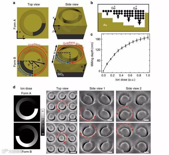 近日,来自密苏里科技大学的研究人员报告了一种独特的3D Janus等离子体螺旋纳米孔径。该结构具有方向控制的偏振灵敏度,并且能够通过一步式灰度聚焦离子束铣削的方法简单制造。由于螺旋纳米孔径内的自旋相关模式耦合过程,在前向实验上实现了大于0.72的透射圆二向色性。在背向实验中,纳米孔径在透射率高达0.87的同时具有显著的线性二向色性。通过用具有指定旋转角度的两个纳米孔径编码Janus 超表面,研究人员首次演示了方向控制的偏振加密数据存储,其中二维快速响应代码图像在指定旋向性的圆偏振入射下前向显示,而背向显示不同的灰度图像。这种Janus螺旋纳米孔径具有广泛的应用价值,在多功能偏振控制、传感、数据加密和解密、光学信息处理等方面都具有应用潜力。