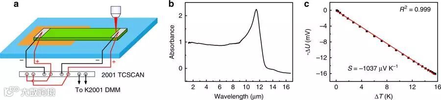中国科学院大连化学物理研究所包信和院士和姜鹏研究院课题组,使用还原的钛酸锶(reduced SrTiO3)作为光热电材料,测出其光电探测器敏感性高达1.2 VW-1,并且响应谱可以从325 nm到10.67 μm的超宽光谱。其高性能是由于该材料固有的高塞贝克系数和其在长波长红外区域,具有声子增强的光响应特性。该研究结果为寻找低成本、高性能的自驱动室温光热电型光电探测器提供了一条新的途径。该研究工作发表在近期的《Nature Communications》上。
