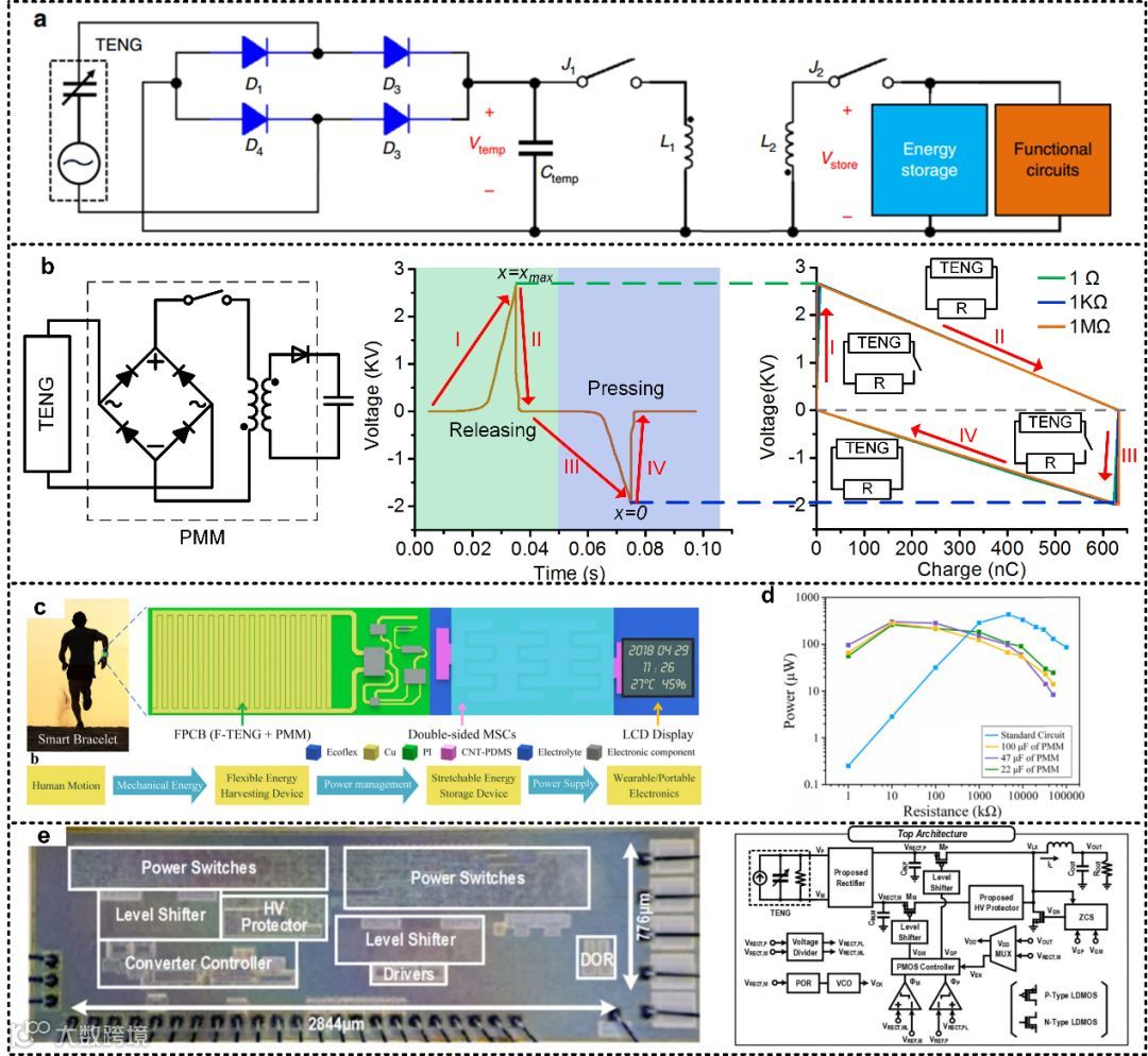 在此基础上,作者将对摩擦发电机的电源管理归纳为三部分,分别是摩擦发电机输出的最大能量提取,摩擦发电机的电压降低,摩擦发电机与能量存储单元的集成三方面的研究进展。