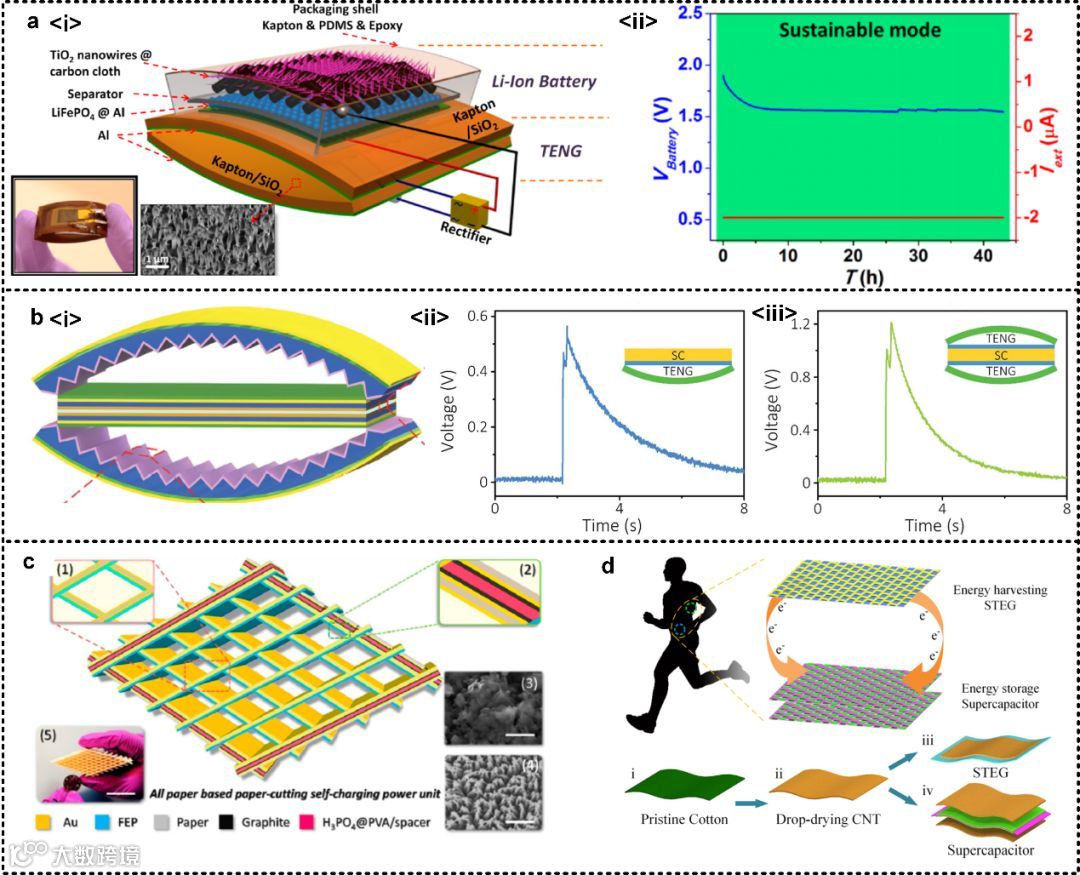 其次,相应的能量存储器件仍需优化,包括更加适用于摩擦发电机的能量存储单元的研究、自我充电的一体化的器件、及高度集成的自充电能量单元的研究;