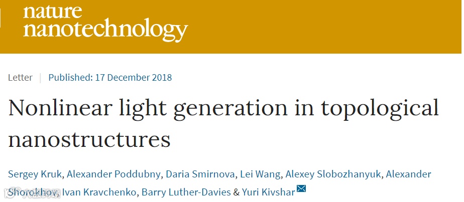 澳大利亚国立大学Yuri Kivshar教授研究团队对非平庸Z字形介电纳米粒子拓扑阵列的三次谐波信号进行了研究,发现了活跃的非线性光子能够在拓扑边界态下逐渐增强,并产生稳定的光束。这一发现为非线性激发拓扑效应开辟了全新的道路。 该研究结果以《Nonlinear light generation in topological nanostructure》为题发表在《Nature Nanotechnology》上。
