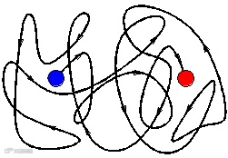 下面我想解释一下为什么不需用U(1)对称性、用量子纠缠也能导出电荷守恒。让我们先考虑一种特殊的量子纠缠,可以形象地用弦液体来描写。所谓的弦液体就是一锅面条。但这锅里的面条很特殊,每根面条都是有方向性的,也就是带箭头的。因为面条是带方向性的,所以面条的两个端点不一样:一个是头,一个是尾。这样电荷(也叫拓扑荷)就出来了:面条的端点对应于电荷,其头对应于正电荷,其尾对应于负电荷。这样定义的电荷自然而然是守恒的。端点跑来跑去,不会凭空消失。当面条断掉的时候,正负电荷(面条的头尾)会同时产生。当把两个面条头尾相接的时候,正负电荷会同时湮灭。所以守恒的电荷能自然而然地从弦液体所描写的量子纠缠中产生出来。