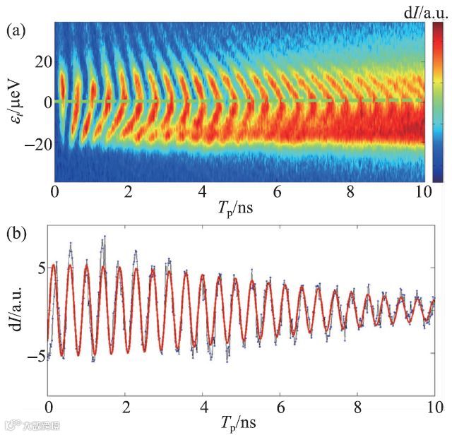 通过施加如图5(b)中所示的拉莫脉冲,非绝热地驱动量子比特在该工作点处进行拉莫振荡 (图6),实现量子比特的翻转演化,提取出比特的振荡频率2.4 GHz,相干时间达到8.1 ns。
