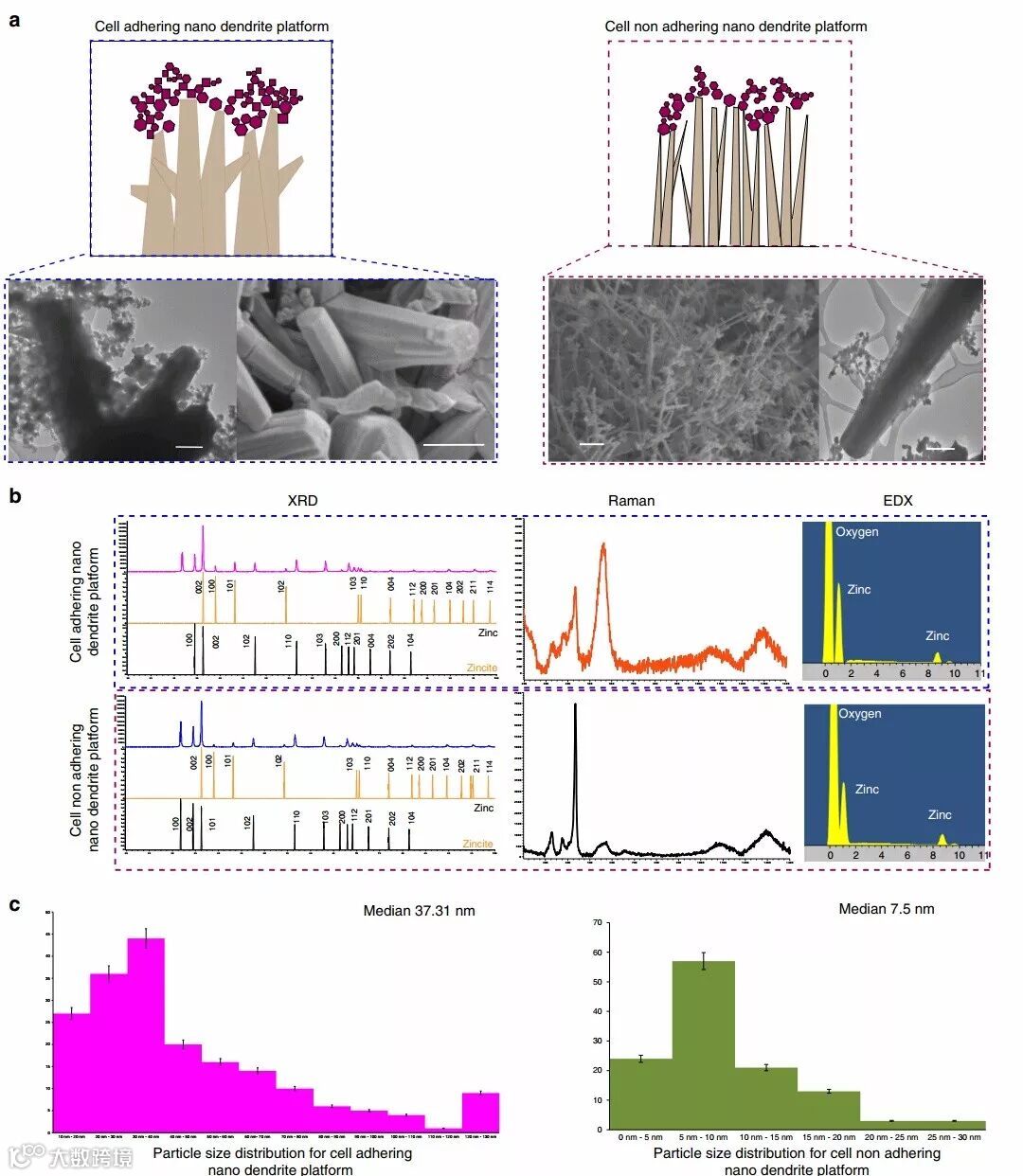 (a)纳米树突基底的三维四足形貌允许细胞粘附和增殖;