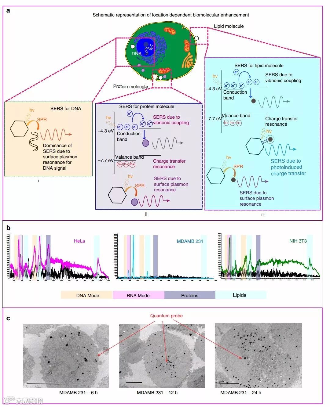 (a)基于细胞内生物分子的位置所产生的各种共振增强示意图;