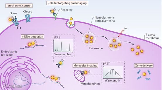 表面等离激元(Surface Plasmons)是一种在金属纳米粒子或纳米结构表面由光诱导的电子集体振荡模式,可广泛应用于集成光子学、光学检测、传感、亚波长分辨成像等领域。近年来,科学家们将这种纳米等离激元(nanoplasmonic)光学天线与生物体系有机结合,以回答生命科学中的各种问题,并解决医学转化中的各种问题。特别的是,纳米等离激元为细胞深入探索、基因传递和调节,以及快速精准的分子诊断提供了常规方法难以企及的洞察力和解决方案。近日,来自新加坡国立大学的Hongbao Xin、Bumseok Namgung和Luke P. Lee在著名综述类专刊《Nature Reviews Materials》上发表长篇综述,系统回顾了用于体外和体内应用的纳米等离激元光学天线(nanoplasmonic optical antennas)的发展历程。该文章评估了光学纳米等离激元天线用于活细胞中mRNA的光学检测和体内分子成像的用途,同时还讨论了用于体内基因传递的纳米等离激元光学天线和基因电路(gene circuit)的光学控制。最后,文章重点介绍了基于纳米等离激元的分子诊断系统在超快精准医学(ultrafast precision medicine)中的应用。