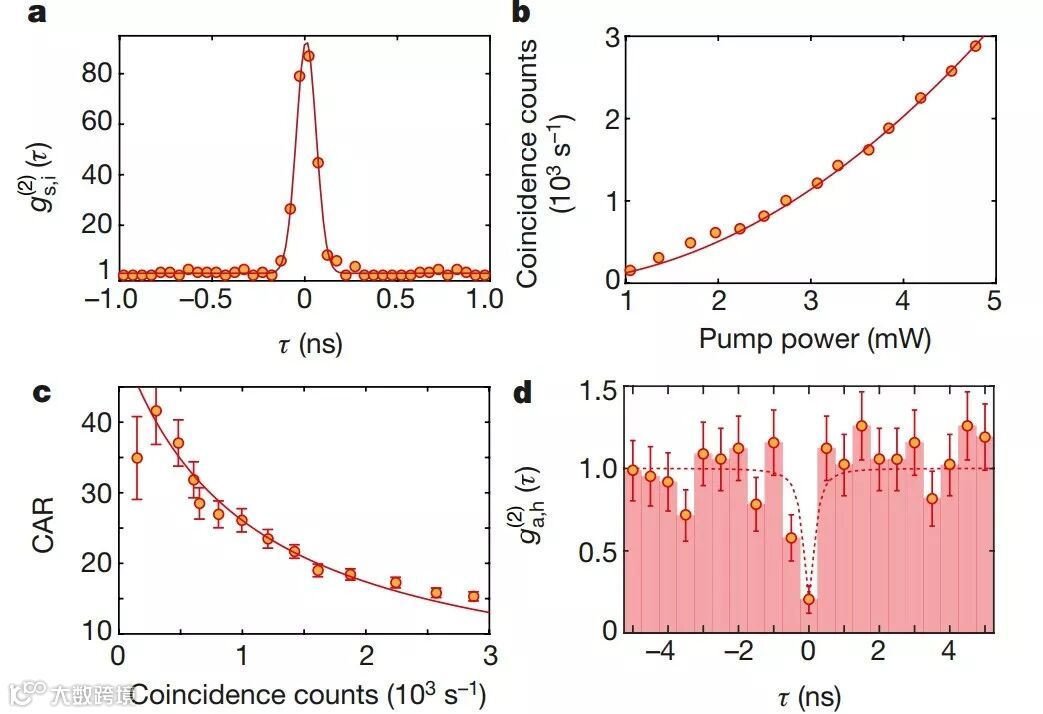 为了证明关联光子之间的非平庸特性,作者测量了信号光和闲频光之间的二阶关联函数