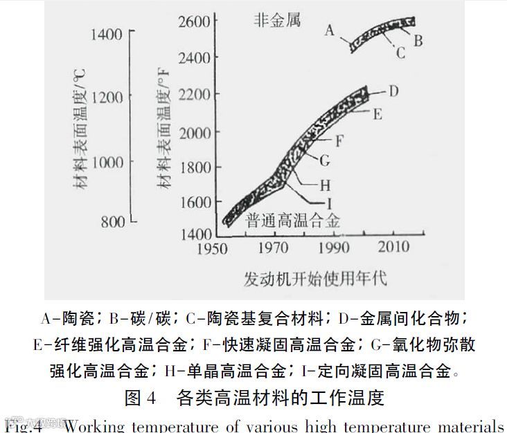 高温合金是航空航天发动机部件的重要材料[15]。传统高温合金已经接近其使用温度上限,无法通过调整成分比例来进一步提高使用温度,只能求助于新型工艺途径,如定向凝固高温合金等( 图4) 。