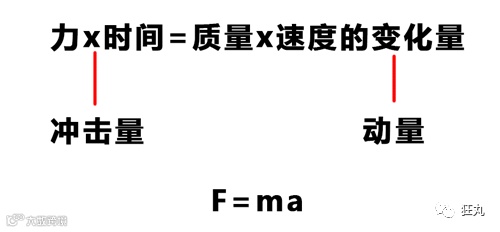 要知道,这个力越大,温格在空中减速所花费的时间也就越少,也就是急停刹车越快。当然这个力越大越危险,就像安全气囊很柔软,但瞬间的弹射力依然能够把人击晕。根据这个关系,这个力其实包含在温格停顿瞬间产生的「冲量」里,也就是力对时间的积累效应,用公式表达为F*t=m*(v2-v1)。这里F就是我们所求的力,t是减速所花费的时间,m则是妹子的体重,v2-v1则代表速度的变化,也就是: