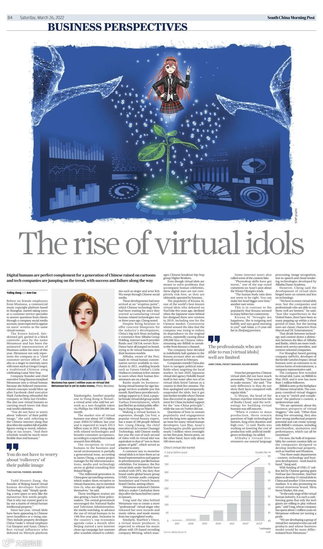 替代不了,受众群还是会有差异的,但会有重叠。至于大家常说的相较于真人偶像,虚拟偶像会有的几方面优势,从另一些角度看,真人偶像也会有虚拟偶像没有的优势。我觉得就交给市场,既然元宇宙来了,我们就用开放的心态拥抱它,但不必执着于某些设定与结果。