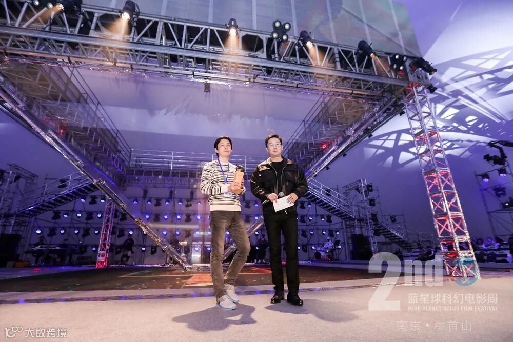 第二届蓝星球科幻电影周颁奖礼“荣誉空间站”上评委会主席、著名导演陆川为获奖者颁奖