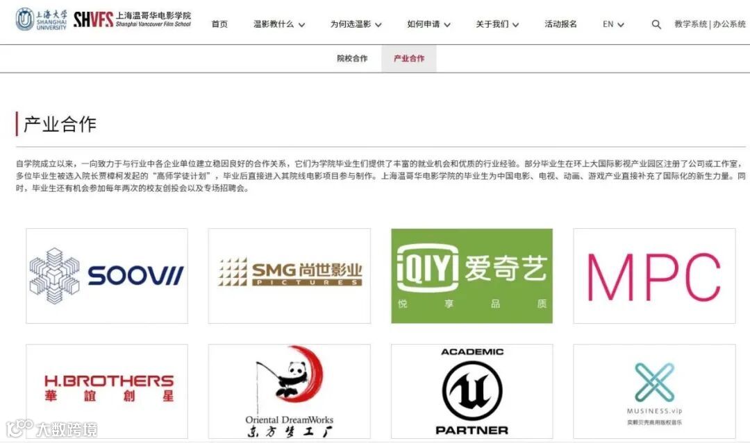 上海温哥华电影学院官网展示