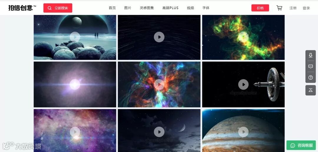 视频方面,拍信平台汇聚了500多万段1080P及4K超高清视频,提供5种视频尺寸供用户选择,满足各种视频短片、广告宣传、微电影、企业宣传及影视剧剪辑需求,具备更加灵活的授权和定价机制。