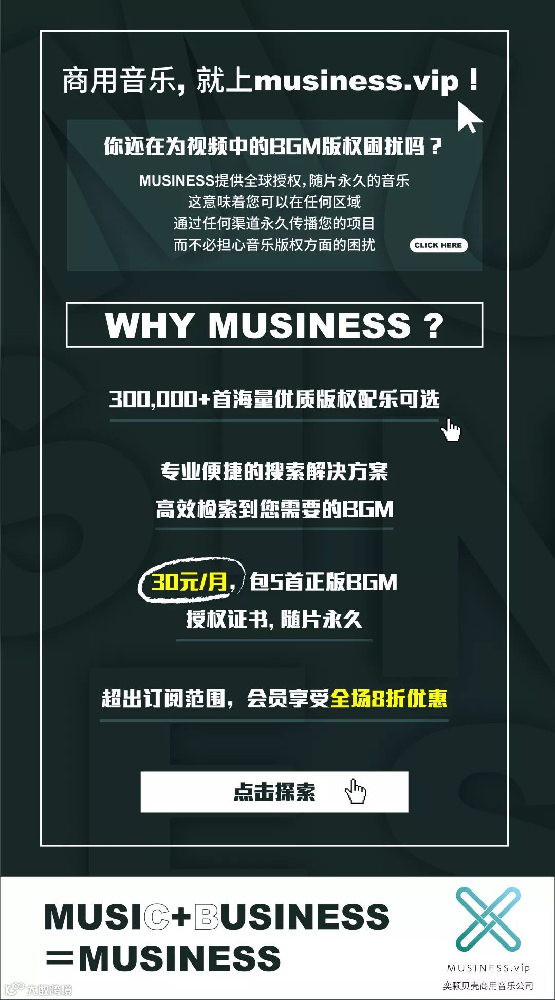 随着“剑网行动”针对短视频、动漫等新兴领域的开展,版权音乐受到了更多的关注。虽然音乐创作人理论上可以自己做这件事,但如果选择一家专业运营的如musiness.vip商用版权音乐平台。让他们来为你的音乐进行分类标签化,推送给广告 、影视、 游戏、 短视频 等B端用户获得广泛的曝光机会,相信比你自己去进行推广、洽谈更高效。而你也不用担心自己的音乐作品类型没有市场,即使对于最小众的音乐,版权音乐平台也是一个很好的选择,几乎所有类型的歌曲都能找到属于自己的合适位置。