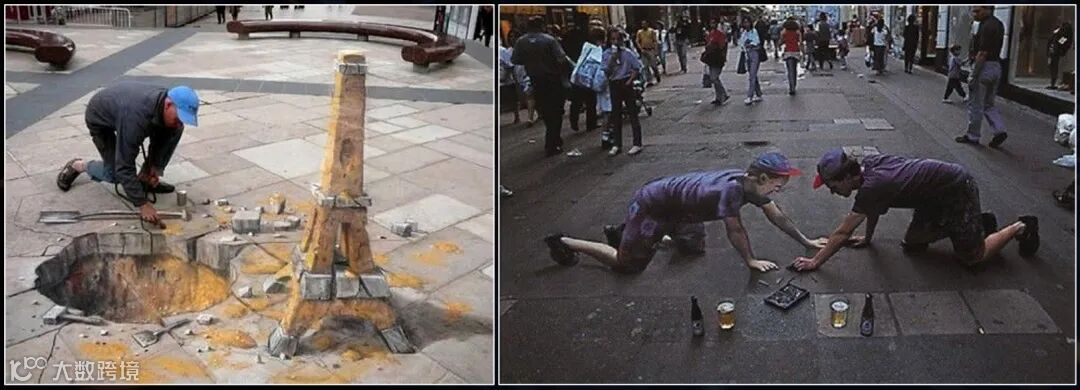如上图所示,如果我们把这两张图直接丢给现有的一些AI系统,它很可能无法分辨这到底是矗立在地面上的物体还是平面的艺术作品。