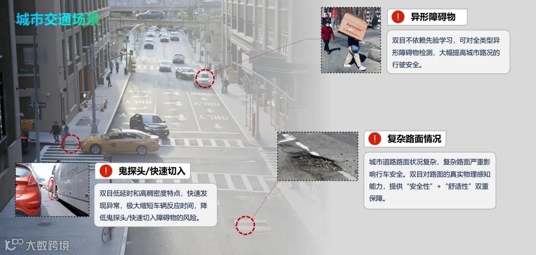 增强型主动安全——暗夜逆光儿童“鬼探头”等场景下,立体视觉可以在目标仅露出一点点,汽车“大脑”还无法脑补识别的时候,帮助快速感知和响应;侧翻异形车识别场景下,立体视觉也有非常好的轮廓捕获能力。
