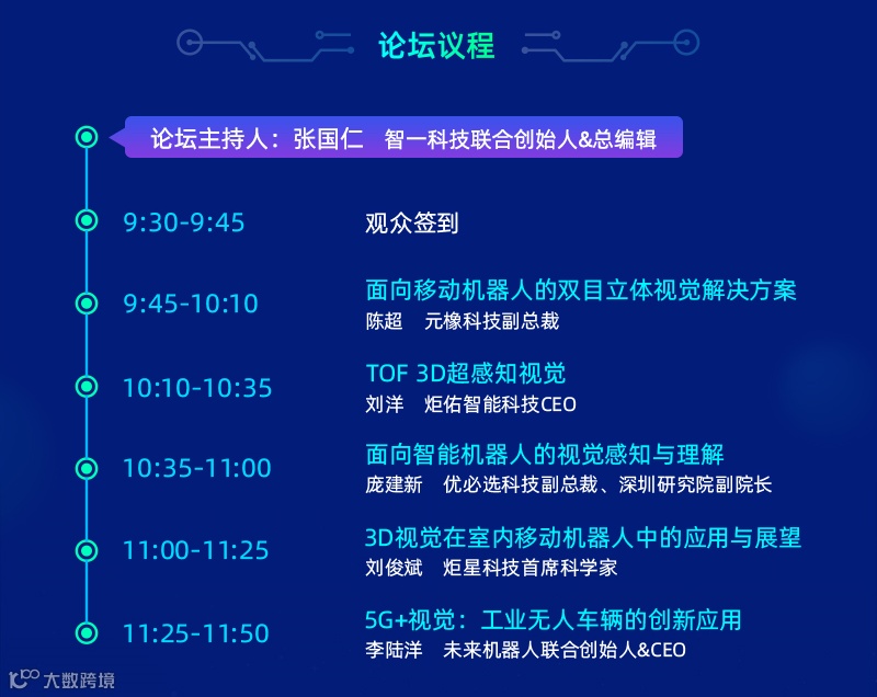 那么,当下3D视觉主要技术路径将如何演进?3D视觉技术在提升移动机器人智能化上面临哪些挑战?3D视觉与其他新兴技术在移动机器人上如何融合创新?为了探讨这些技术和行业热门话题,在第22届中国国际光电博览会同期,智东西将举办移动机器人3D视觉论坛。目前,论坛议程也已经基本确定: