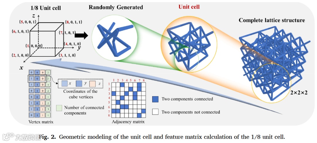 • 在航空航天结构、生物支架等高要求领域,亟需定制化力学性能(如弹性模量)的轻量化晶格材料。传统设计依赖试错法或拓扑优化,耗时数小时至数天,且受限于局部最优解和专家经验,无法高效探索海量设计空间(约1100万种单元构型)。