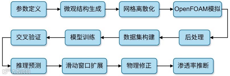 1. 数据生成:5250个微观结构→10,500个CFD模拟 -