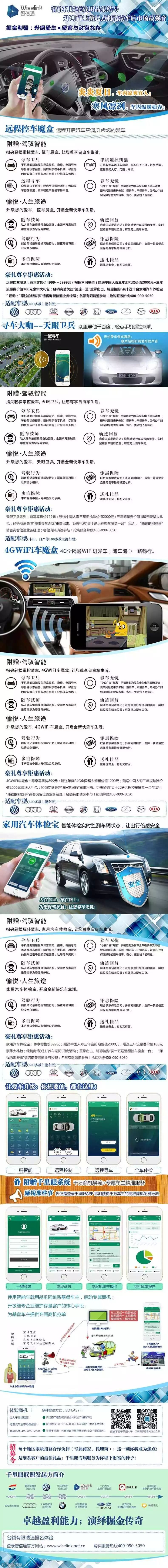 远程控车魔盒系列(远程开启汽车空调炎炎夏日、凉爽宜人;凛冽冬日;温暖如春)天眼卫兵系列(寻车大咖、轻点手机轻松找到爱车)4GWiFi车魔盒(尊享免费36G超大流量;随心随车畅行)家用汽车体检宝(让每一次出行都倍感放心)千万车主升级爱车的必备;广阔的利益空间为您杨帆!