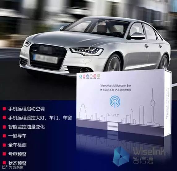 功能全景:手机远程启动空调、停车碰撞预警、停车托移预警、手机远程遥控大灯、车门、车窗、智能监控油量变化、一件寻车、全车检测、亏电预警、状态预警等等