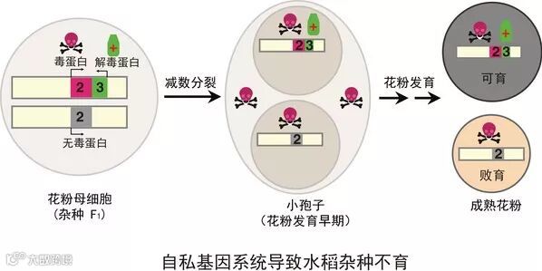 《自私的基因》是英国演化理论学者理查德·道金斯的经典著作,这一概念说的是双亲杂交后,父本或母本中能控制其自身的DNA片段优先遗传给后代的基因,使亲本自身的遗传信息能更多、更快地复制,并能更多地传递给子代,从而维持物种自身的稳定性。近日,中国农科院作物科学研究所所长。中国工程学院院士万建民院士团队创造性地运用自私基因模型揭示了水稻的杂种不育现象,日前,国际顶级学术杂志《科学》Science在线出版了这一突破性成果。
