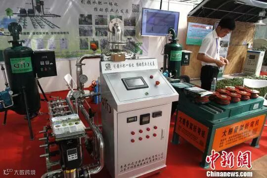 在今年4月举行的第19届中国(寿光)国际蔬菜科技博览会上,具备自主智能管控能力的现代化系统、设备等成为焦点。图为水肥一体化、蔬菜大棚建设设备。(资料图) 沙见龙 摄