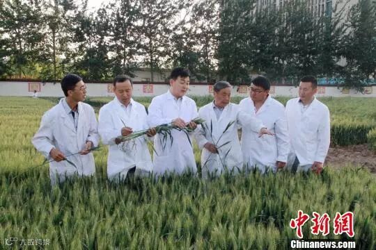 中国工程院院士、山东省农业科学院研究员赵振东和小麦遗传育种团队骨干成员,在育种试验田讨论新品种选育进展情况。(资料图) 刘佳 摄
