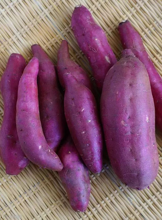 紫薯整体形状会比红薯要更细长,比红薯要稍微“瘦”一些。平时选购紫薯的时候,要注意选择外皮比较光滑的。