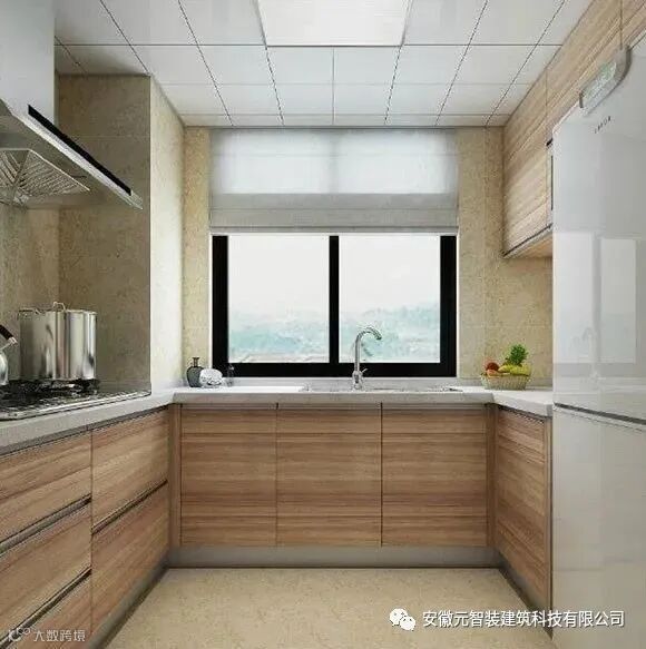 厨房的面积虽然不大,整体的设计效果也没有中式的元素,但看起来却也非常的清爽整洁,暖色调的配色设计营造出极具生活气息的烹饪环境。