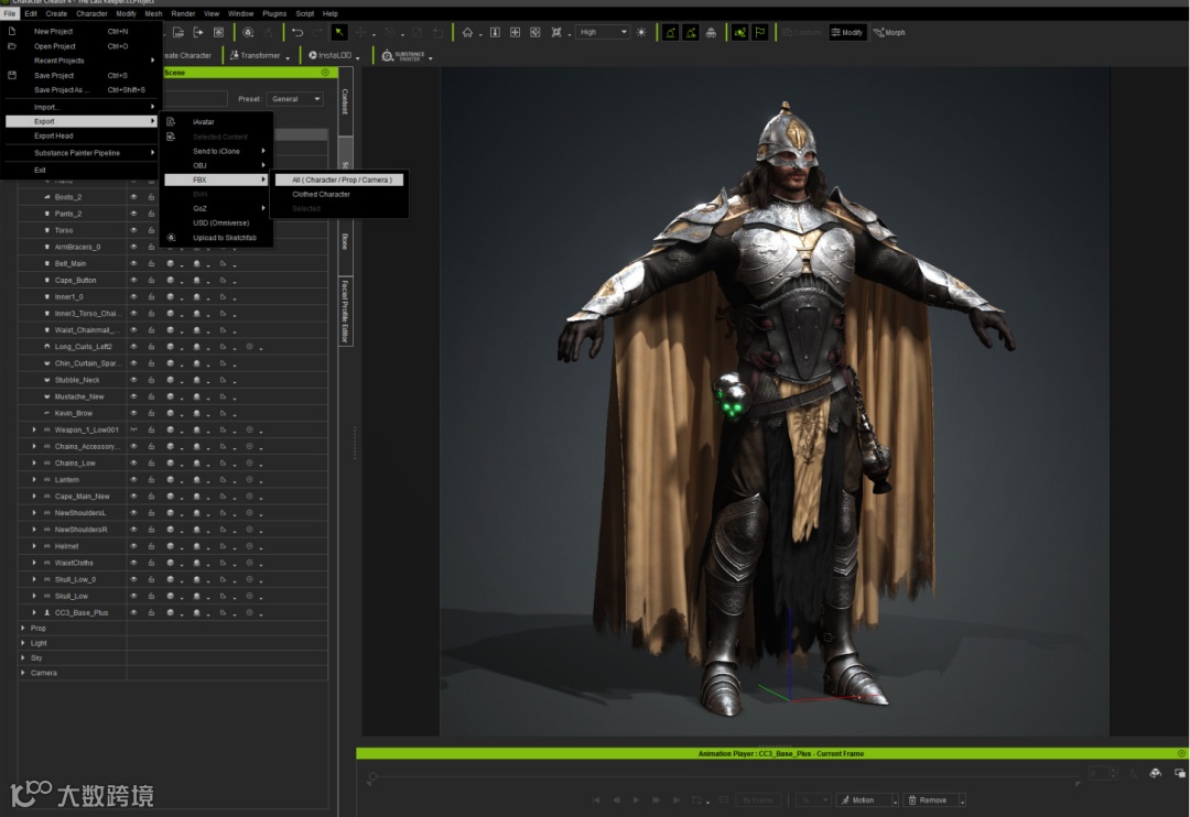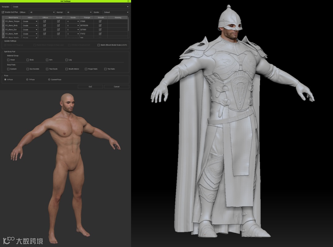 接下来,我在Character Creator 4中使用GoZ Plus轻松地将角色导入到ZBrush中,随后对盔甲和服装进行了建模。