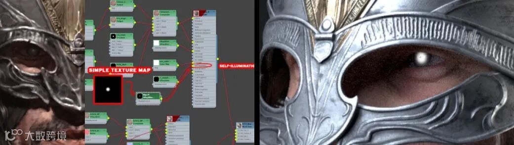 不幸的是,并非所有内容都可以使用自动设置材质滑块进行调整。例如,对于发光的学生来说,没有选择。作为一种简单的解决方法,我必须打开“材质编辑器”,并为双眼材质的自发光节点添加纹理贴图,以实现发光效果。