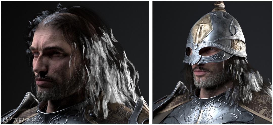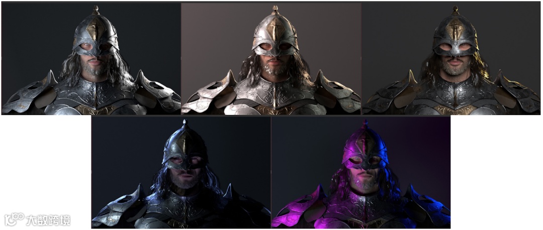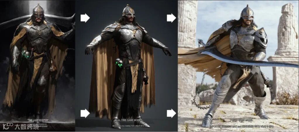 纹理处理完成后,盔甲被导入角色创建器,并作为配饰或服装安装在基础角色上。下面是一个简化的流程图,以头盔为例,说明了从ZBrush到Character Creator 4中的最后一块的过程。