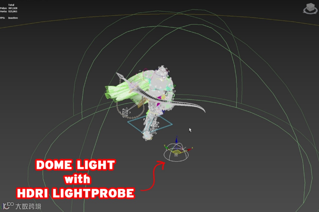 第一个任务是在自动设置面板的第一个选项卡上测试Look Dev预设。此选项卡具有10个预设按钮,可自动生成全面的灯光集,以及场景的相机和背景。为了提高可用性,包含了一个虚拟辅助对象,可以同时轻松旋转场景中的所有灯光。