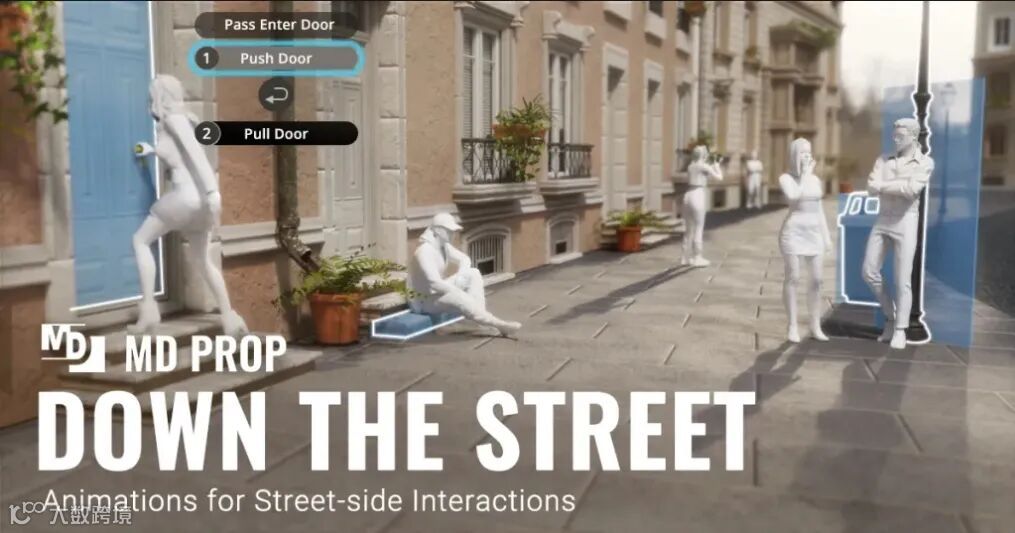 通过10个精心制作的MD道具,街道上的互动可以自动化,每次都能达到自然的效果。数百个触发动画允许角色坐着、靠在墙上或栅栏上,或在椅子上休息。常见的行为,如使用自动售货机、点饮料、吸烟和街头表演聚会,也被无缝地整合到现实行为中。