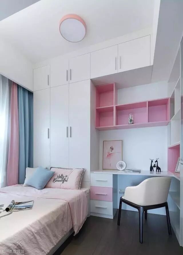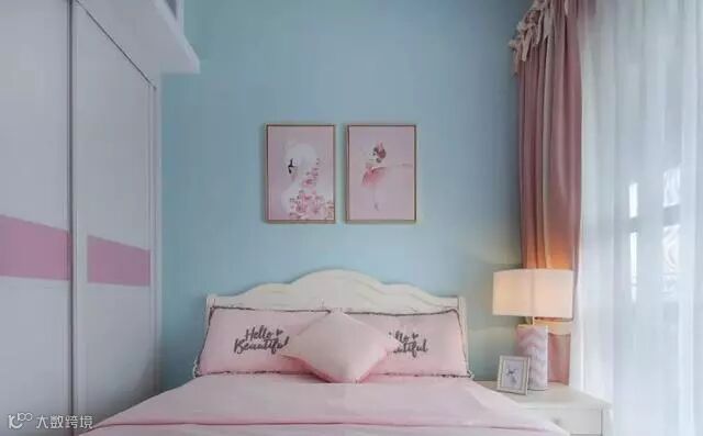 淡蓝色与淡粉色相结合装饰出来的次卧是不是超梦幻呀,如果是女生,想必都抗拒不了这样的诱惑吧