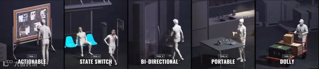 这个工具的关键在于它能够根据道具的接近程度和场景的上下文生成逼真的反应,使角色能够动态地适应他们的环境。如果你创造了互动世界,你就会知道这个系统已被广泛用于主要视频游戏中的背景NPC(非玩家角色)。该系统采用了这一理念并对其进行了改进,允许进行出色的定制,并与便携式和静态对象进行大量的交互。