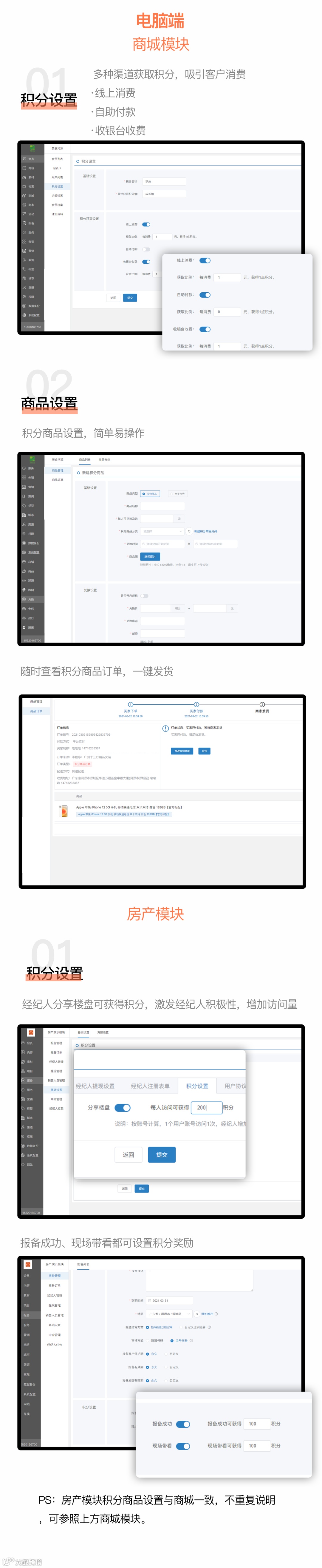 积分商城是易行应用推出的一款帮助商家以积分的形式推广的营销工具,商家设置好积分计划,用户通过多种方式获得积分奖励,累积达到一定的数量后可兑换礼品,从而给小程序带来更多的传播和促进销量提升。(ps:商城模块和房产模块皆可使用)
