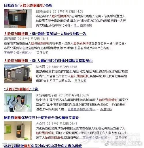一方面是刷脸取厕纸的方式新颖引起的关注,另一方面是高大上的人脸识别技术与厕纸的搭配使用,两者之间的鲜明对比,不免让人觉得大才小用。