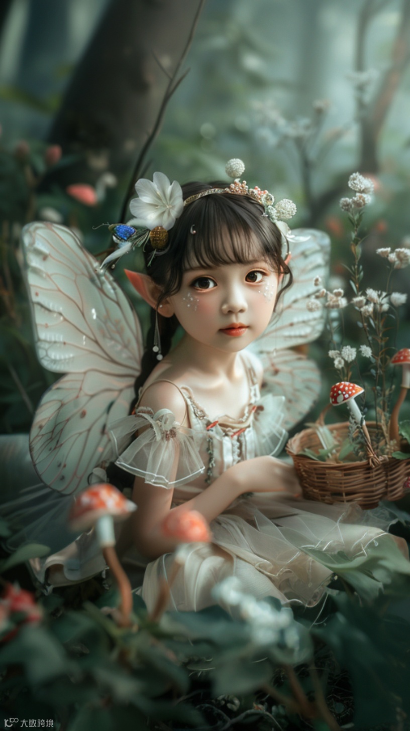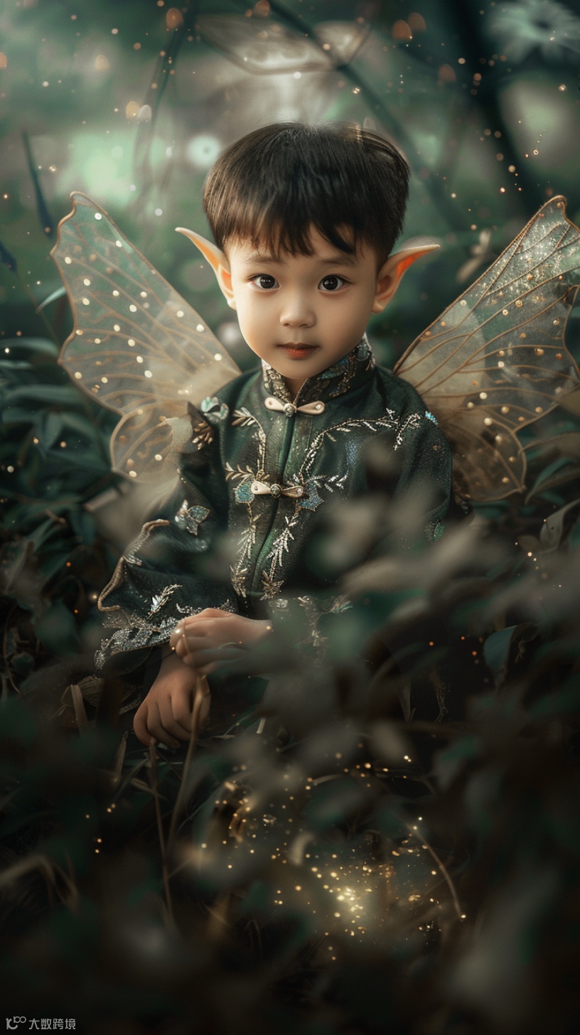 孩子变身美丽的精灵,置身于一片五彩斑斓的童话森林中。
