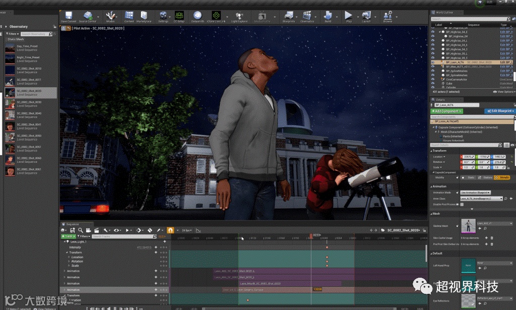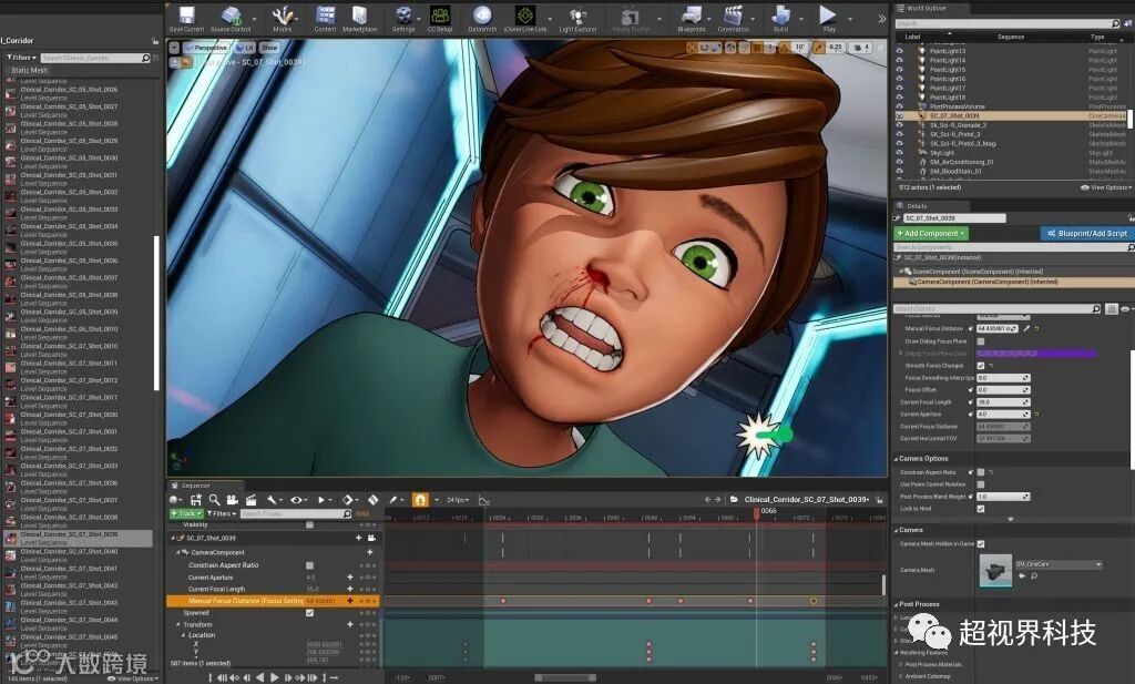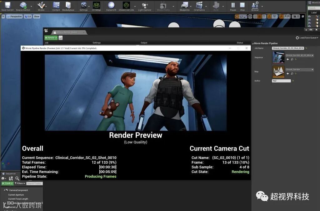 这就是我们后来在制作中引入的虚幻引擎艺术家,如电影制作人/动画师郑浩南,他加入了团队,帮助我创建镜头,能够在第一天就立即投入到镜头创作中,并在虚幻引擎序列器中使用从iClone导出的FBX的Lipsync、身体动画和面部动画开始制作动画。