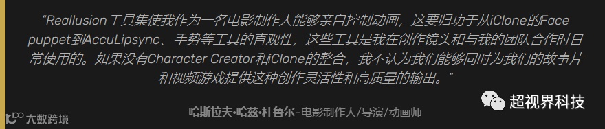 完全同意。我们正在拥抱Real-time类引擎和Reallusion工具,使我们能够去做一些通常被认为是非常高成本和疯狂的事情。作为一个小团队,我们需要在角色动画和视频游戏领域的内容创作层面找到更加明智的方法。