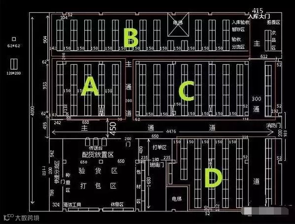 发货的时候是零散的,不是整批的发,所以零散发有专门一个区叫拼装区。