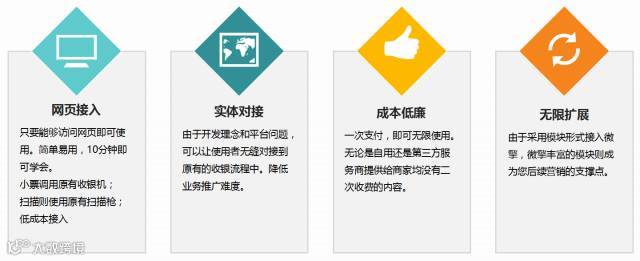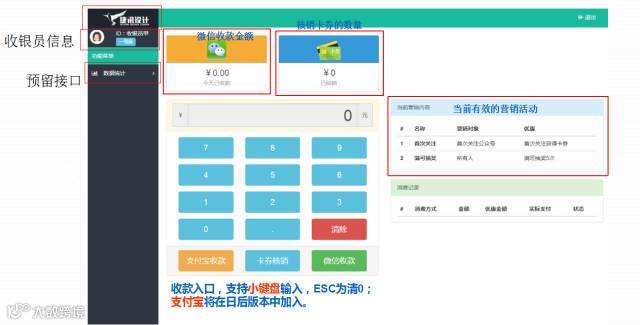 易行收银台是集合微信支付、卡券核销、支付宝支付一体的收银系统,无需特定的收银设备,有电脑、手机等设备即可收银,而且收银后还有丰富营销模块,将线下收银变成企业互联网道路上的一个重要入口。