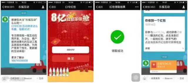 玩法介绍:系统生成随机数字口令,粉丝发送口令就能领取现金红包。红包可支持固定及随机金额,口令支持系统生成或者自定义。每个口令都有唯一性,领取一次后自动失效。