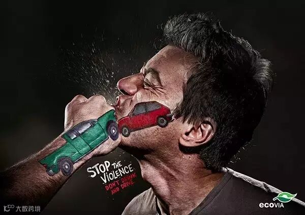 ↑↑这是国外的一则酒驾公益广告。其创意的核心理念是,酒驾就和暴力无异,所以,制止暴力,停止酒后驾车。